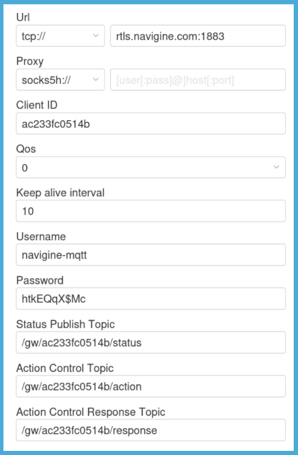 Выберите тип брокера Generic MQTT и заполните URL-адрес: rtls.navigine.com:1883